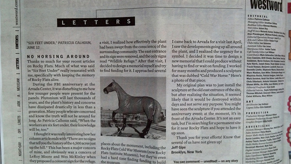 "Cold War Horse" sculpture installed near Rocky Flats